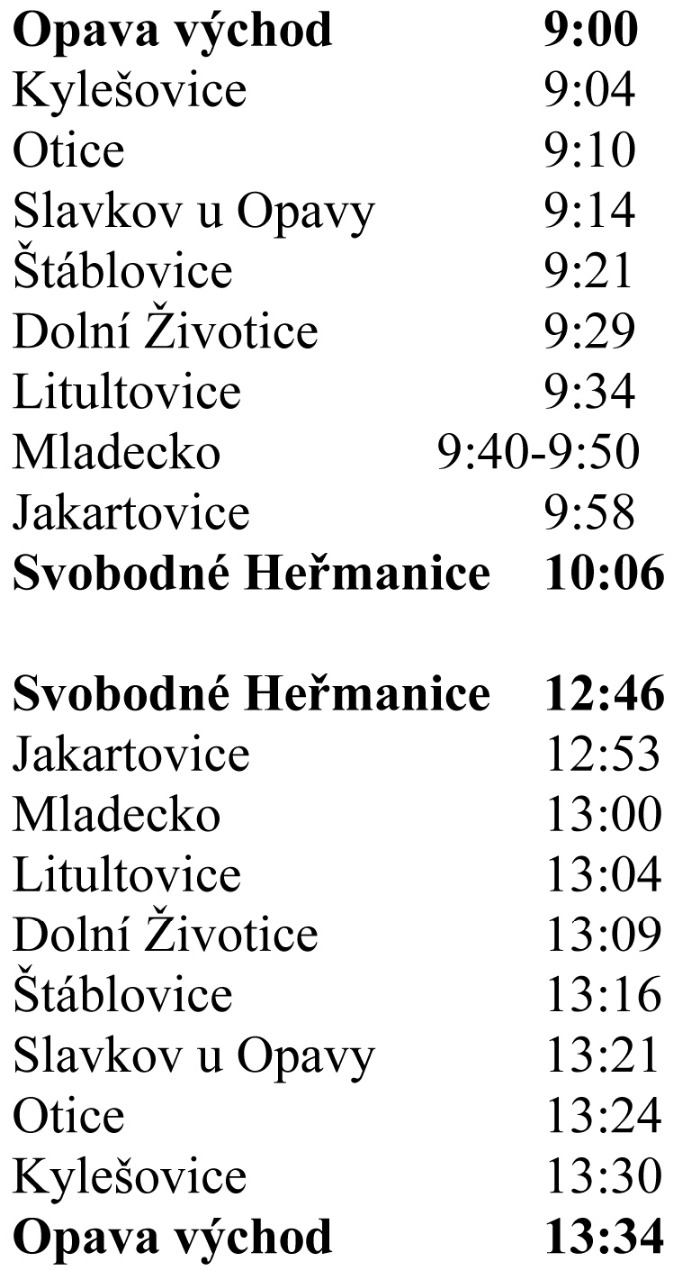 Cestující ze stanic Mladecko a Jakartovice zaplatí: dospělí 80 Kč, dvě děti 80 Kč.